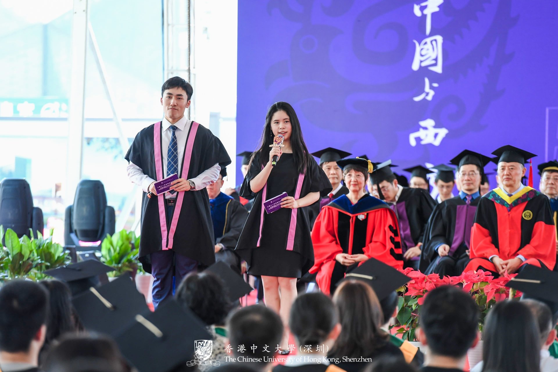 獲得“杰出學(xué)生獎(jiǎng)”的何澤翰同學(xué)代表全體畢業(yè)生發(fā)表感言?!案兄x學(xué)院里和藹可親的教授們給予了我們良好的學(xué)術(shù)指導(dǎo),讓我們了解了學(xué)術(shù)前沿,遇見包羅萬象的知識(shí);學(xué)校提供了各種創(chuàng)業(yè)平臺(tái)和指導(dǎo),讓我們可以實(shí)現(xiàn)自己的每一個(gè)夢(mèng)想和創(chuàng)意,并不斷提升個(gè)人軟實(shí)力,遇見燦若繁星的夢(mèng)想;香港中文大學(xué)(深圳)讓我們開闊了國際視野,遇見更為廣闊的世界;書院所營造的溫馨環(huán)境,助我們成為一個(gè)卓越的社會(huì)人,培養(yǎng)了我們的綜合素質(zhì),遇見煥然如新的自己?!?/p>