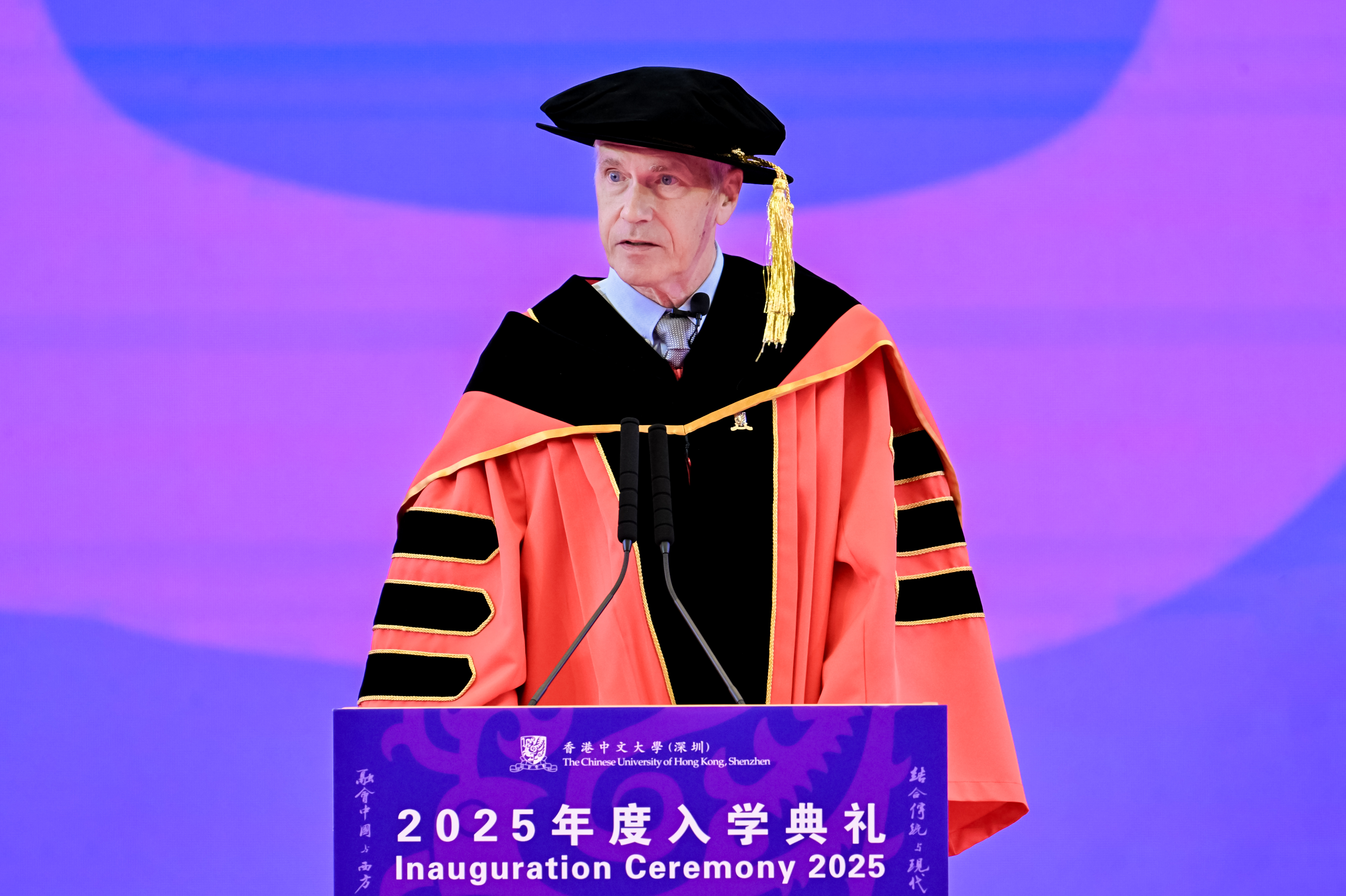 August 30, 2025?– The Chinese University of Hong Kong, Shenzhen (CUHK-Shenzhen) held its?Inauguration Ceremony for Students 2025, welcoming over 4,600 undergraduate and postgraduate students from around the world to embark on a new journey. President Xu Yangsheng and University Leadership, alongside representatives from the University Governing Board and faculty, joined undergraduate and doctoral freshmen in the main venue at Liwen Hall for the ceremony. Master's students participated simultaneously via livestream in the University Sports Hall. Parents of new students and guests from various sectors witnessed the students embarking on this new life chapter online.