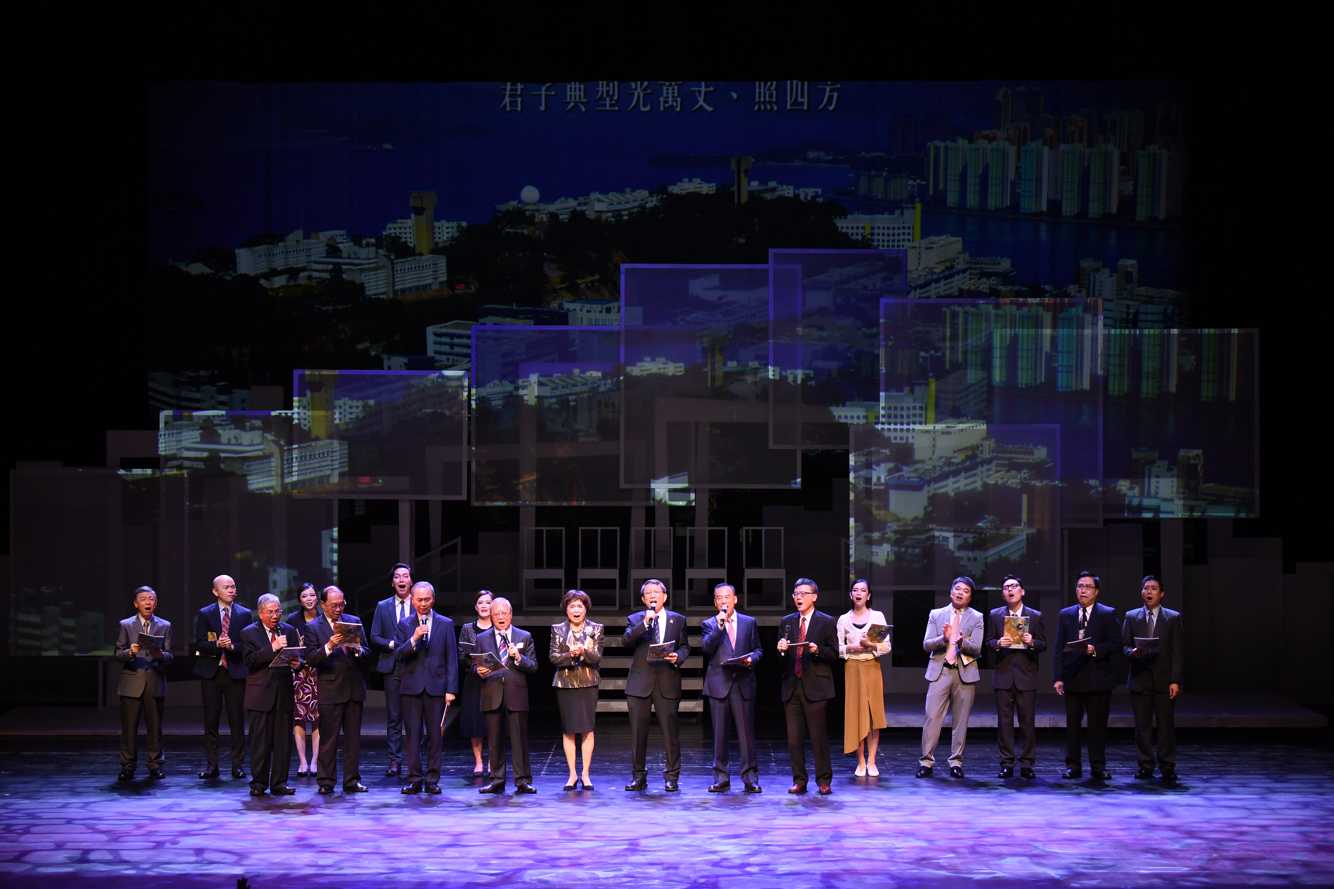 It is reported that Dr. Leung Fung-yee, the playwright of My Love and a world's leading financial fiction writer, stars as a heroine of her own dramas for the first time in this remarkable performance. The whole show is cast by the administrators, faculty, and alumni of CUHK and CUHK-Shenzhen. Dr. Leung Nai-pang, Norman, Chairman of CUHK Council, CUHK President Prof. Rocky S. Tuan, Former CUHK President Prof. Joseph J. Y. Sung and CUHK-Shenzhen President Prof. Yangsheng Xu, all participate in the event by singing the theme song Through Learning and Temperance to Virtue. The starry casting of My Love does surprise the audience with a vivid rendition of the humanistic spirit and the history of Hong Kong.