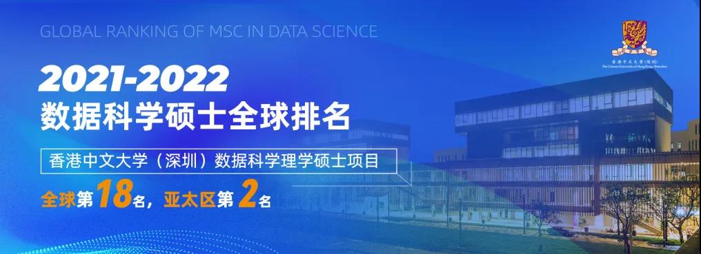 At the end of September 2021, ChaseDream, China’s leading business school application and career development platform, released its highly anticipated 2021-2022 Global Rankings of Master of Science in Data Science Programmes. The MSc in Data Science Programme of The Chinese University of Hong Kong, Shenzhen was ranked 18th in the world and 2nd in the Asia Pacific according to ChaseDream's comparison of over 200 programmes worldwide.