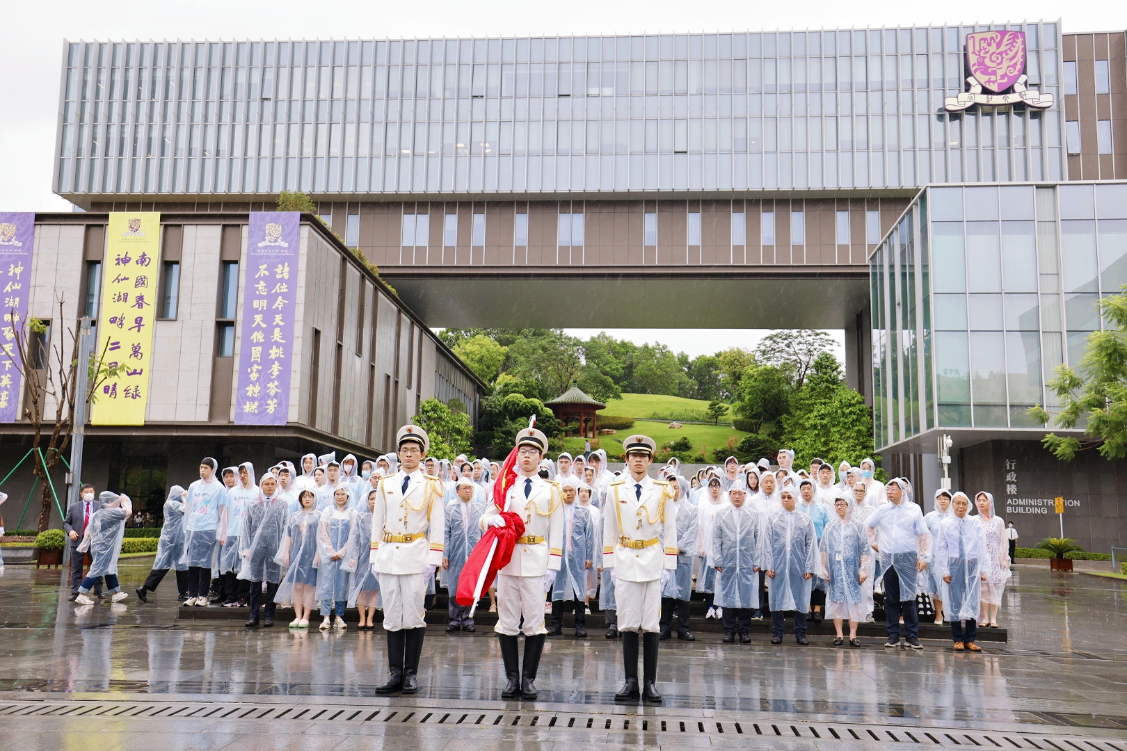 On the morning of July 1, 2022, 150 student representatives from the four colleges of The Chinese University of Hong Kong, Shenzhen participated in a solemn flag-raising ceremony with university officers and faculty. After the National Flag of the People's Republic of China, also known as the Five-star Red Flag, was raised on the campus, they joined to watch the entire live broadcast of the Celebrations of the 25th Anniversary of Hong Kong's Return to the Motherland and the Inaugural Ceremony of the 6th Term Government of the Hong Kong Special Administrative Region.?
