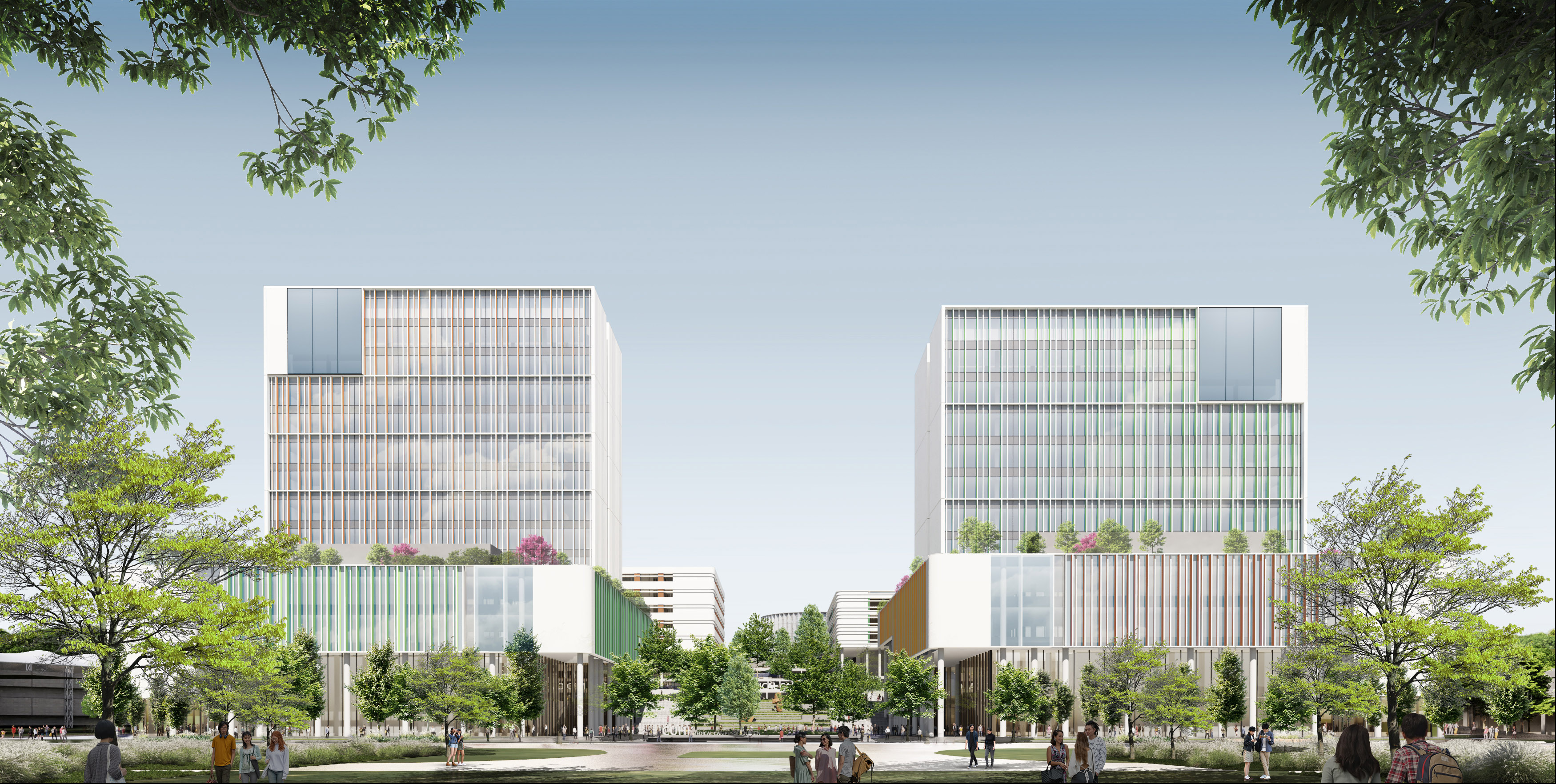 The School of Medicine, CUHK-Shenzhen represents the cooperation between the Shenzhen Municipal Government, CUHK, and CUHK-Shenzhen to nurture a world-class medical institution. Situated within the International University Park in Longgang District, the project lies adjacent to the provisional CUHK-Shenzhen School of Music (also recognized as the Shenzhen Conservatory of Music) to the east, and overlooks the Shenzhen MSU-BIT University to the south.