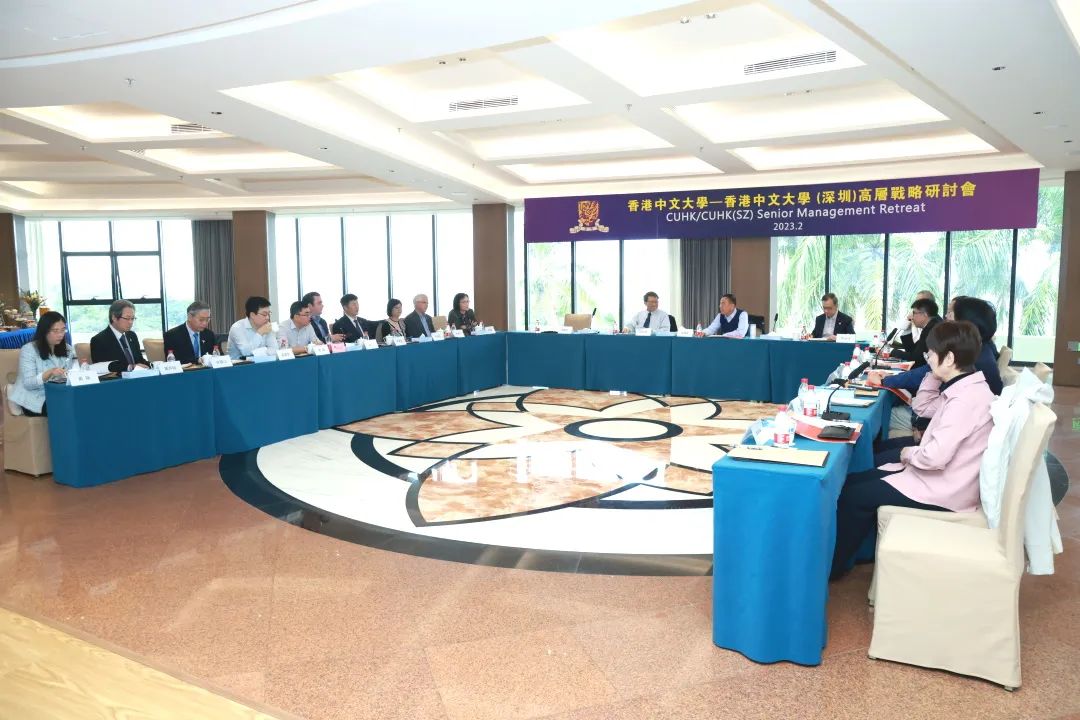 On 19th February 2023, The Chinese University of Hong Kong (CUHK) and The Chinese University of Hong Kong, Shenzhen held their Senior Management Retreat. Representatives from both entities participated in the meeting, engaging in profound discussions and collaboratively exploring development plans. They emphasised the distinctive advantages of the "one country, two systems" framework in Hong Kong and the "dual-zone construction" in Shenzhen, committing to building "one brand and two campuses." Additionally, a joint office will be established to facilitate ongoing educational collaboration between the two campuses.