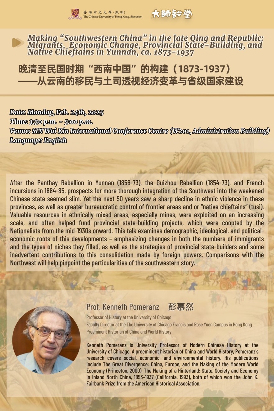 【Master Forum】Making “Southwestern China” in the late Qing and Republic: Migrants, Economic Change, Provincial State-Building, and Native Chieftains in Yunnan, ca. 1873-1937