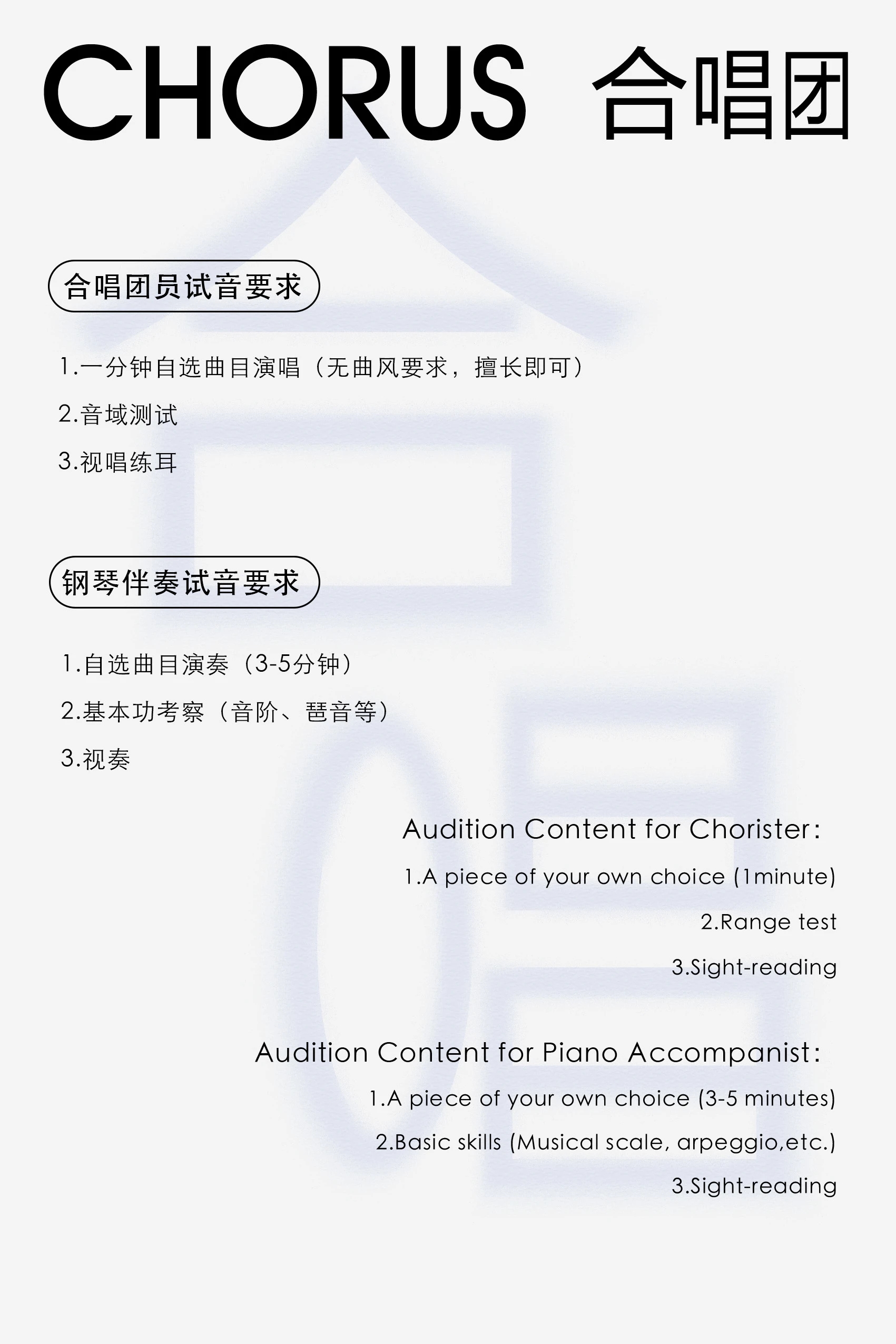 After nearly nine years of development, the Chorus is capable of interpreting different musical styles with wide influence. It is committed to adding a rich artistic atmosphere to the campus, further promoting the development of aesthetic education with distinctive features, and holding multiple chorus concerts to bring the beauty of music and the unique harmonious sound of chorus to all corners of the campus. Meanwhile, it has participated in numerous off-campus performances, with its footprint spanning the Hong Kong City Hall, Hong Kong Youth Square, Hong Kong Cultural Centre, Shenzhen Concert Hall, Shenzhen Poly Theatre, Shenzhen Grand Theatre, Chengdu City Concert Hall, Longgang Cultural Centre, Guangming Culture & Arts Center, Sea World Culture & Arts center Mountain View Theater, and more. In the future, the Chorus will continue to write a new chapter with its singing and passion for music.
