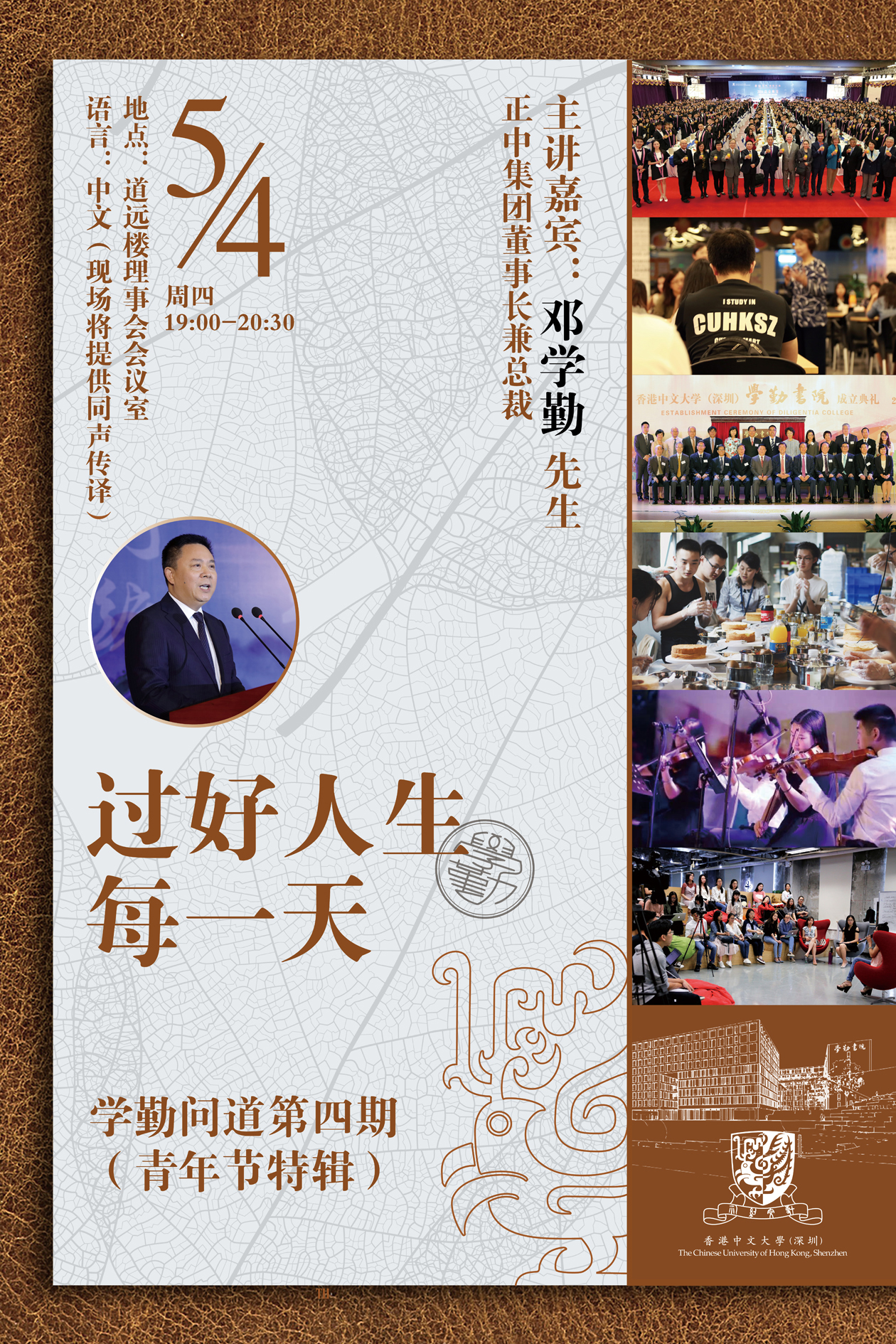 You are cordially invited to the 4th Diligentia et Sapientia delivered by Mr. Deng Xueqin at 19:00pm on Thursday, May 4th.