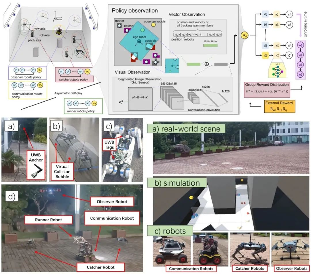 2023年8月,IEEE T-RO在線發表題為“Asymmetric Self-Play-Enabled Intelligent Heterogeneous Multirobot Catching System Using Deep Multiagent Reinforcement Learning”的論文。該論文提出了一種創新的多智能體強化學習框架,并實現其在機器人圍捕任務中的應用。深圳市人工智能與機器人研究院高源博士為論文第一作者,林天麟教授為論文獨立通訊作者。