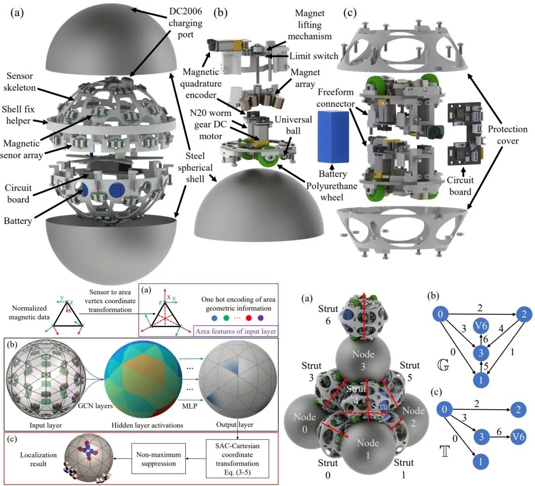 與傳統機器人系統相比,模塊化自重構機器人系統具有更強的魯棒性和適應性。在本研究中,研究團隊提出了一種名為FreeSN的新型自由連接及桁架結構的模塊化自重構機器人系統,其由節點模塊和連桿模塊組成。節點模塊的表面覆蓋著鐵球殼,并集成了磁傳感器陣列。而連桿模塊則包含兩個磁性自由連接器,可連接到節點模塊的任意位置并實現運動。