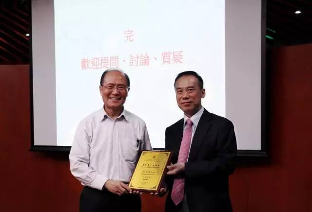 港中大(深圳)校長徐揚生教授將“中國文化大講堂”紀念牌贈予劉笑敢教授