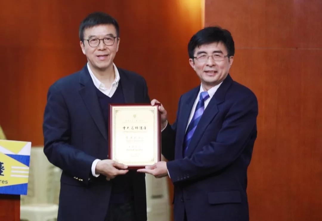 港中大(深圳)協理副校長蔡小強教授向港中大賈教授贈予“中大名師講座”紀念證書