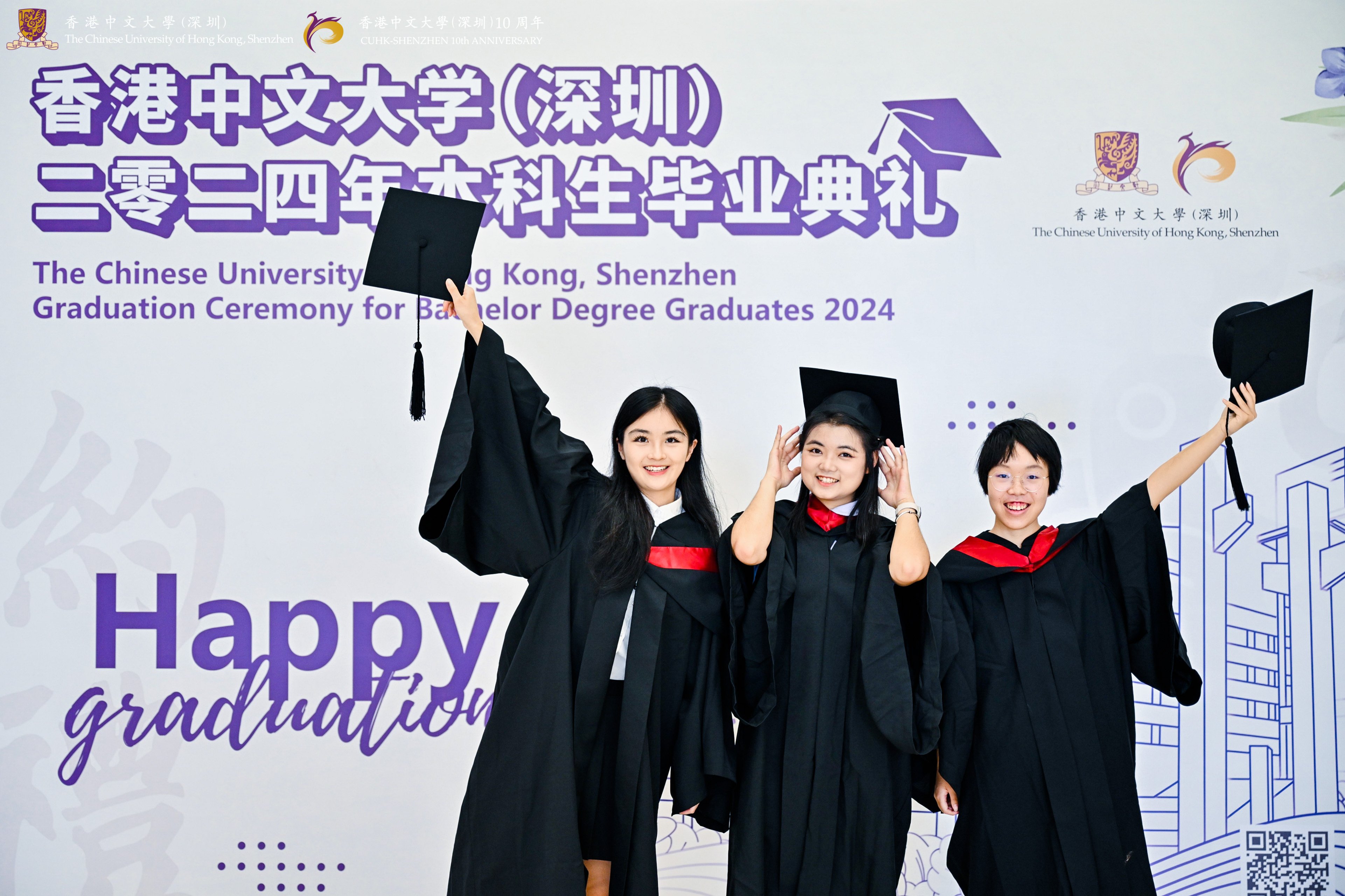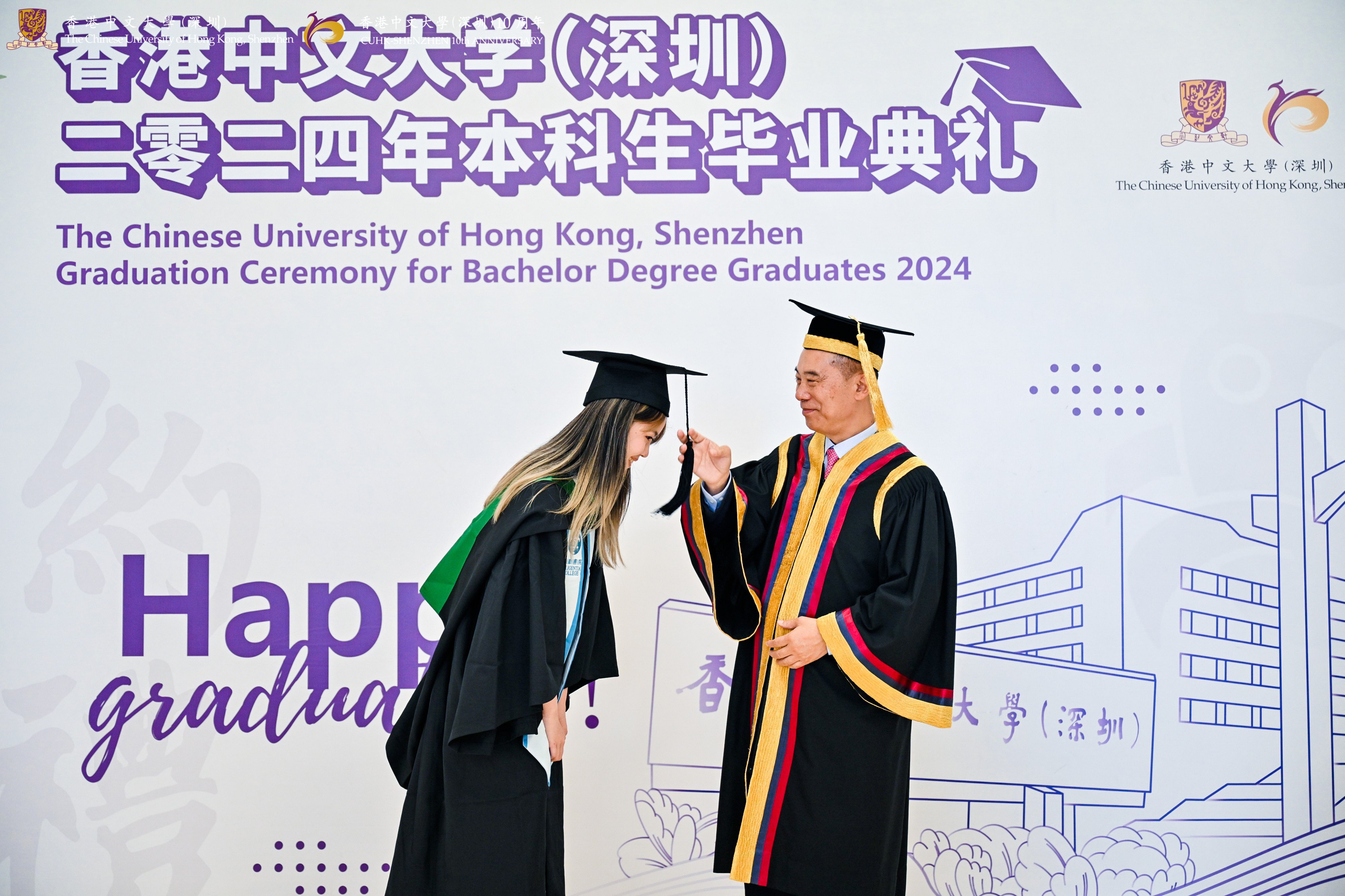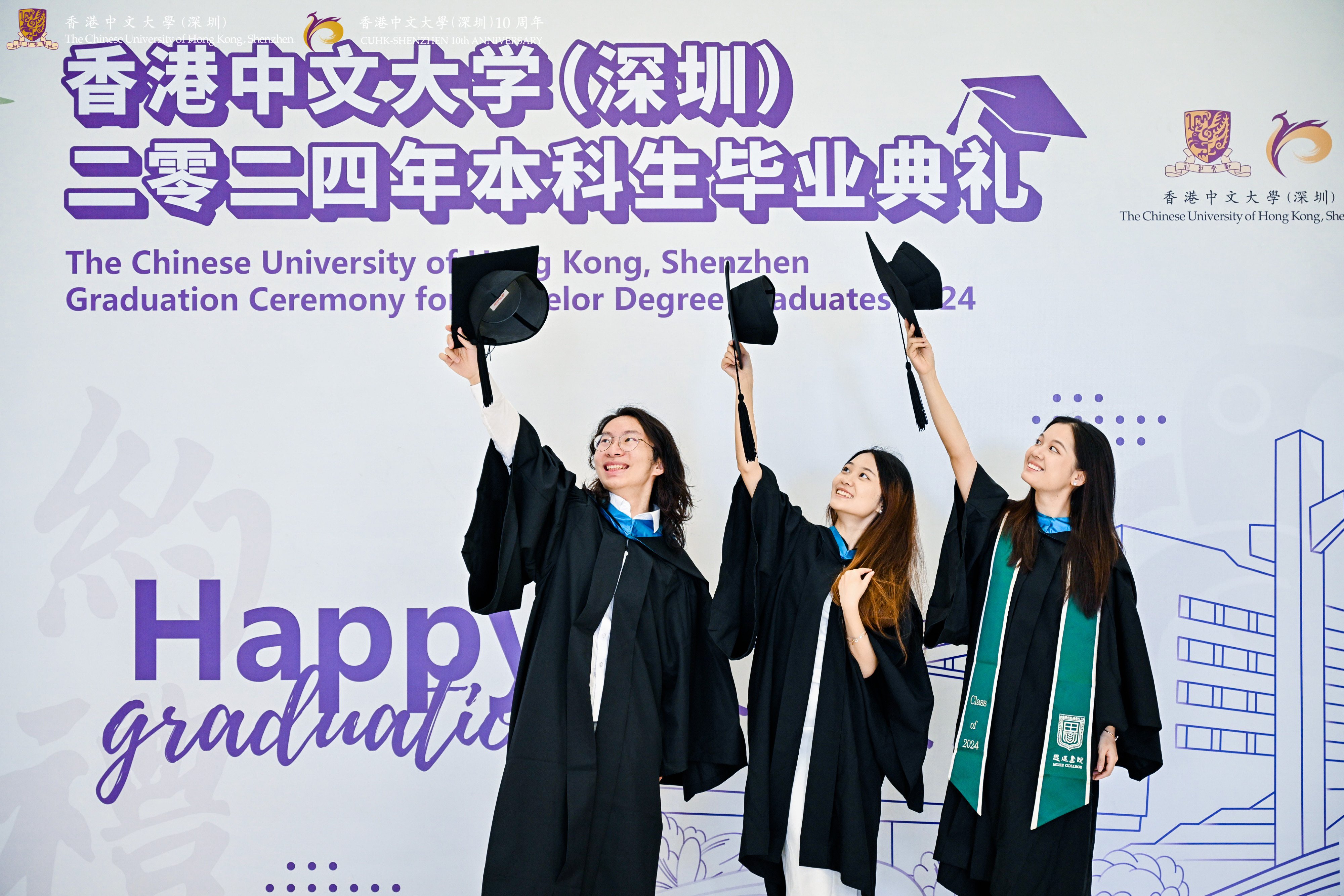 草木青青,桃李灼灼,恰同學少年,意氣風發,惜別四年閃光的年華,即將啟程遠航。5月19日,香港中文大學(深圳)舉行2024年本科生畢業典禮,1600多名本科畢業生圓滿完成學業、踏上嶄新征程,來自全國各地的3000多名2024屆本科畢業生家長及親友,遠程而來的國際生親友以及社會各界嘉賓相聚神仙湖畔,共同觀禮祝賀。