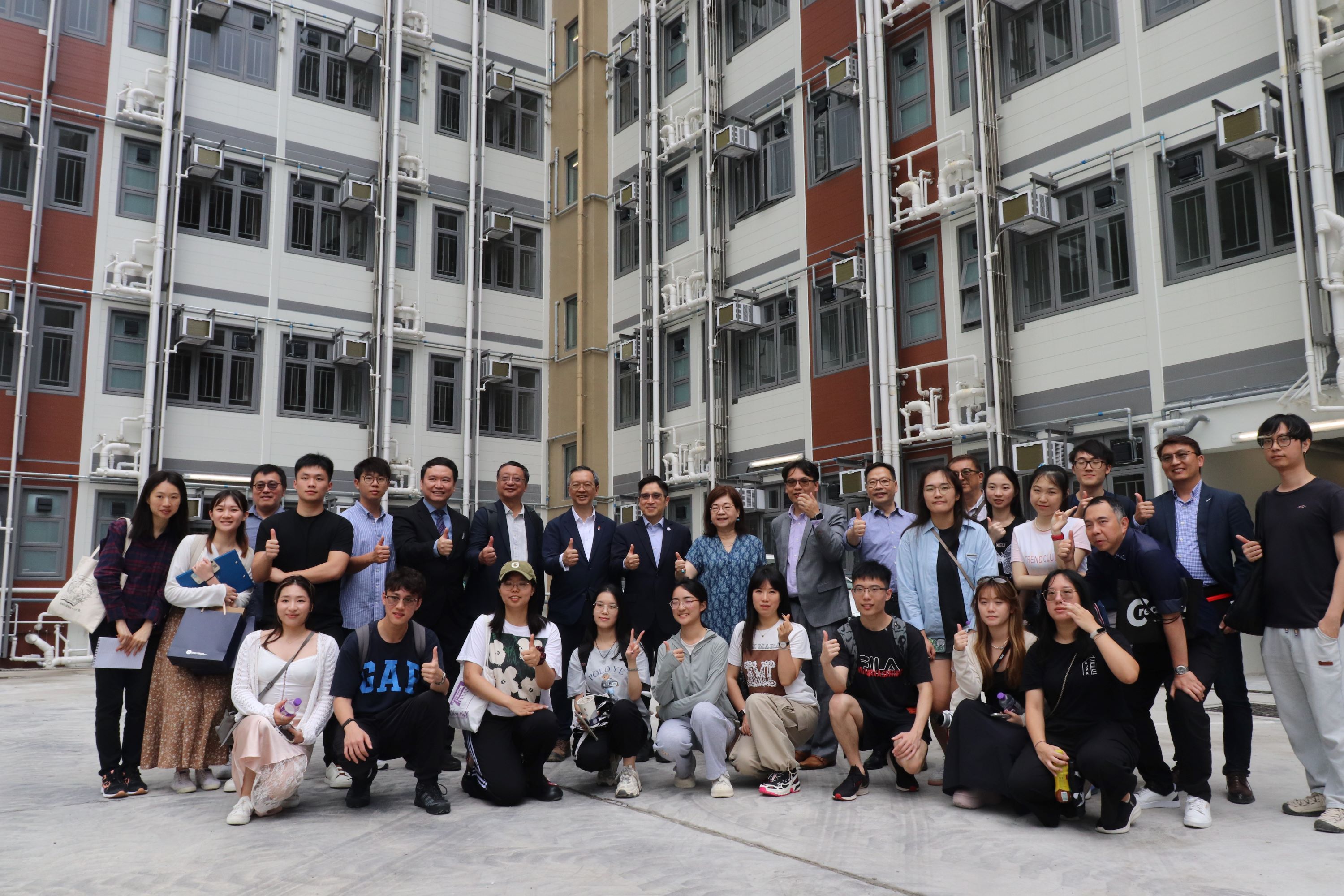 值得一提的是,學(xué)生們在香港特區(qū)房屋局的安排下,參觀了兩個創(chuàng)新房屋項目,包括位于象山邨由空置校舍改造的過渡性房屋“樂屋”,以及即將竣工的牛頭角彩興路過渡性房屋項目。研學(xué)營活動邀請了香港特別行政區(qū)政府房屋局副局長戴尚誠先生與學(xué)生們交流,分享香港結(jié)合創(chuàng)新、技術(shù)與環(huán)保的可持續(xù)城市發(fā)展經(jīng)驗。學(xué)生們了解到香港如何善用空置校舍等城市資源建造過渡性房屋,以及政府在工程中實踐可持續(xù)發(fā)展理念,為基層人士提供更適宜的居住環(huán)境和配套。