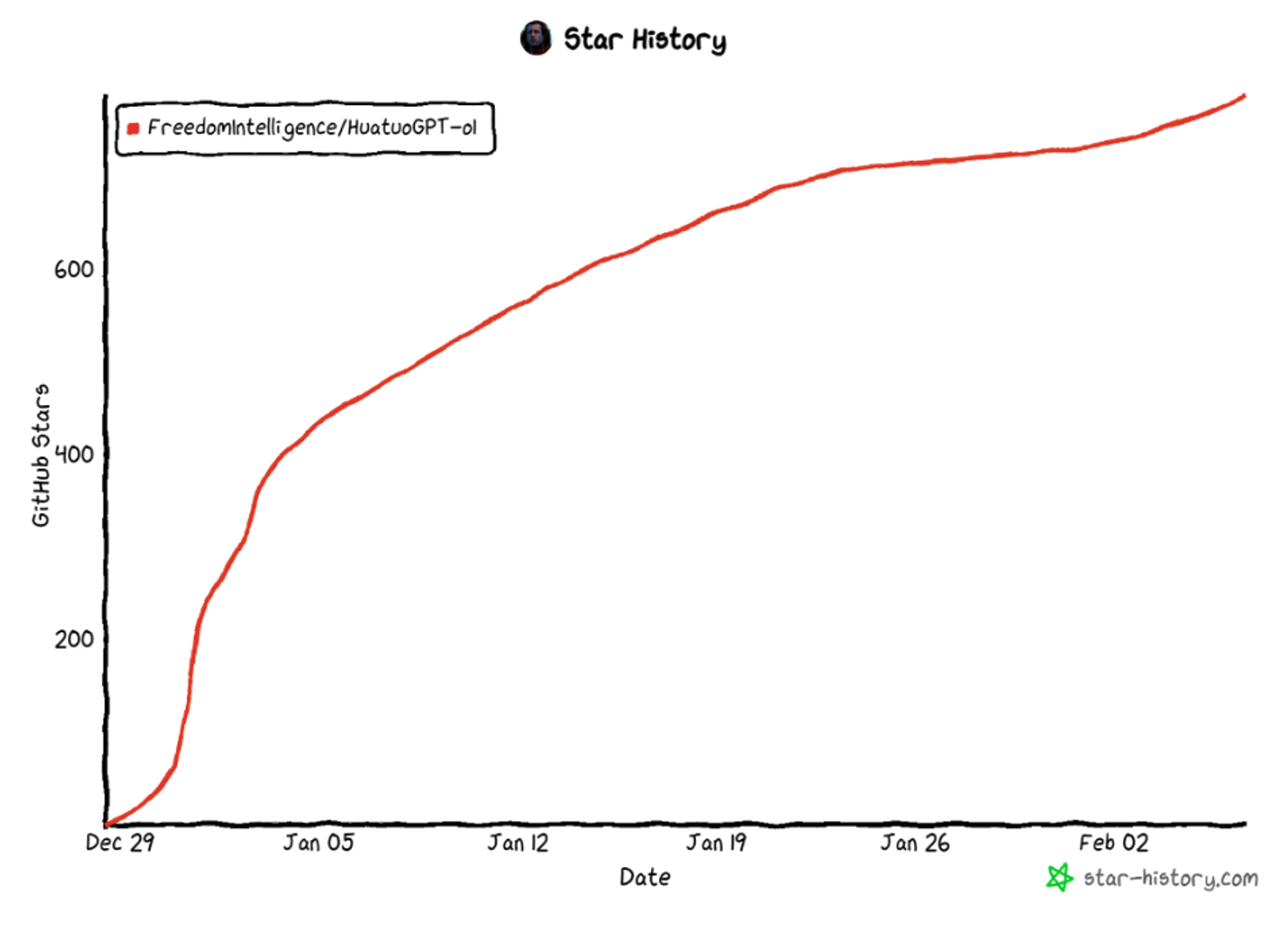 ?HuatuoGPT-o1在發布一個月內獲得了巨大關注量,累計近1000stars