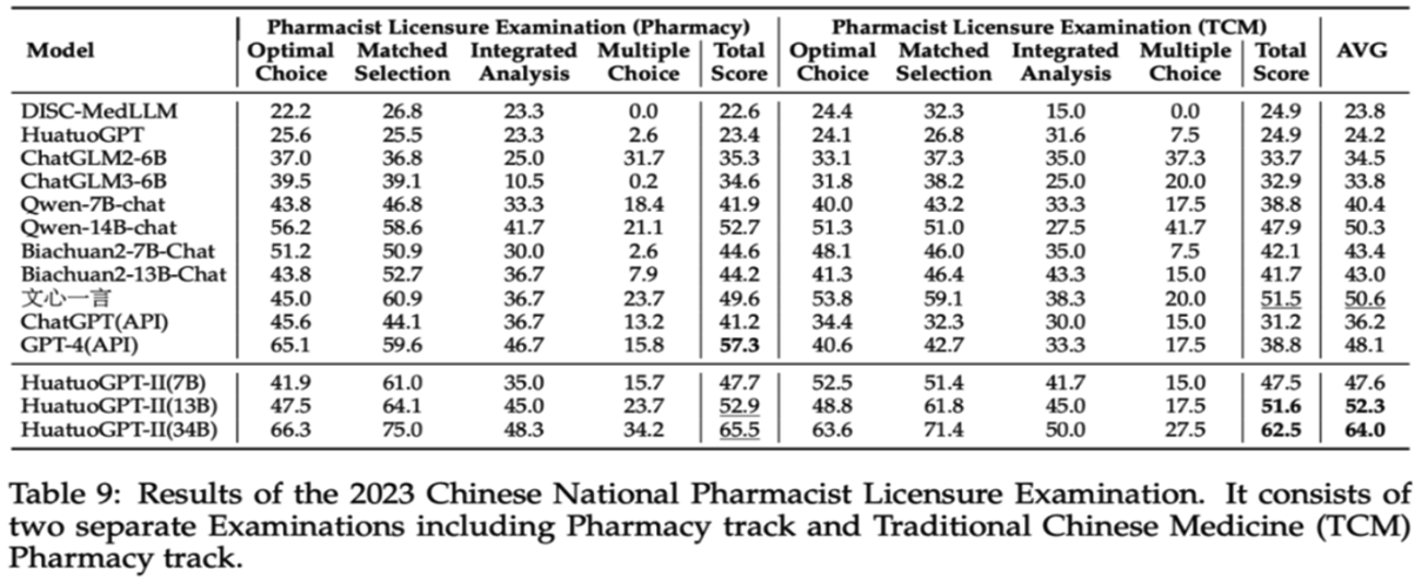 2023年開發的華佗GPT-II通過當年10月份的國家執業藥劑師考試