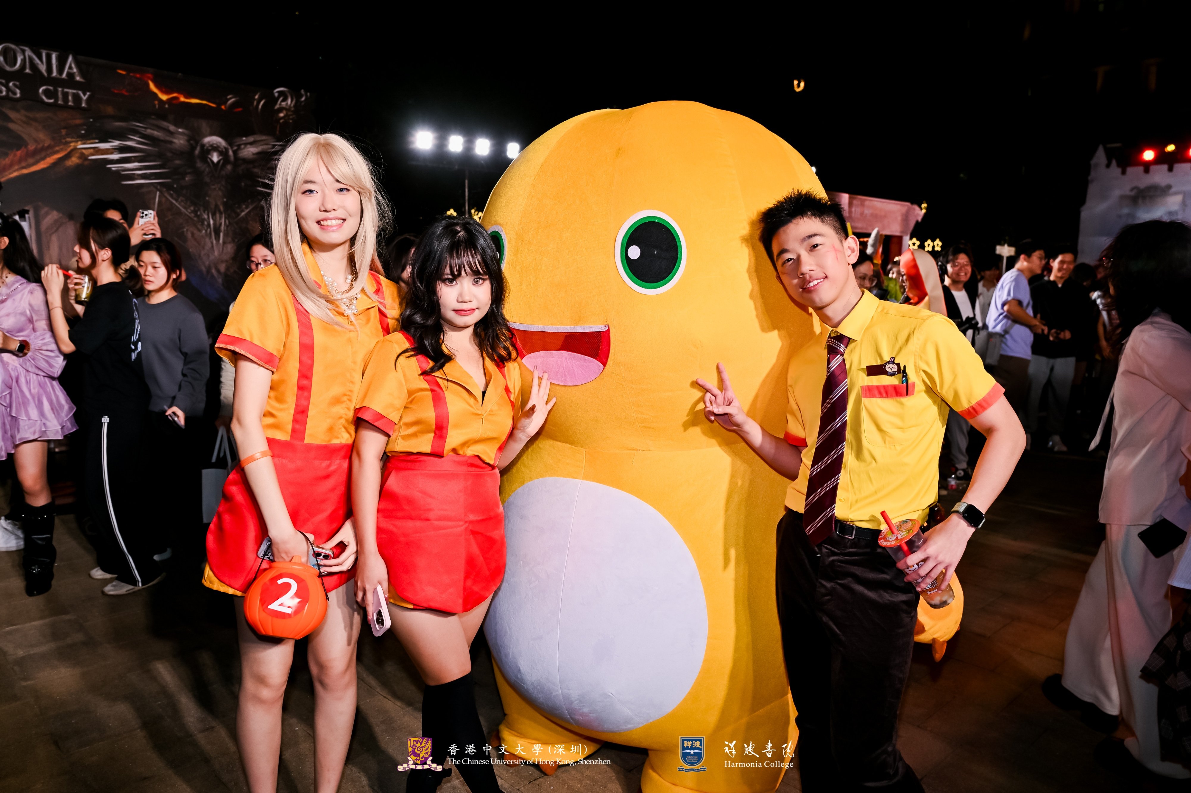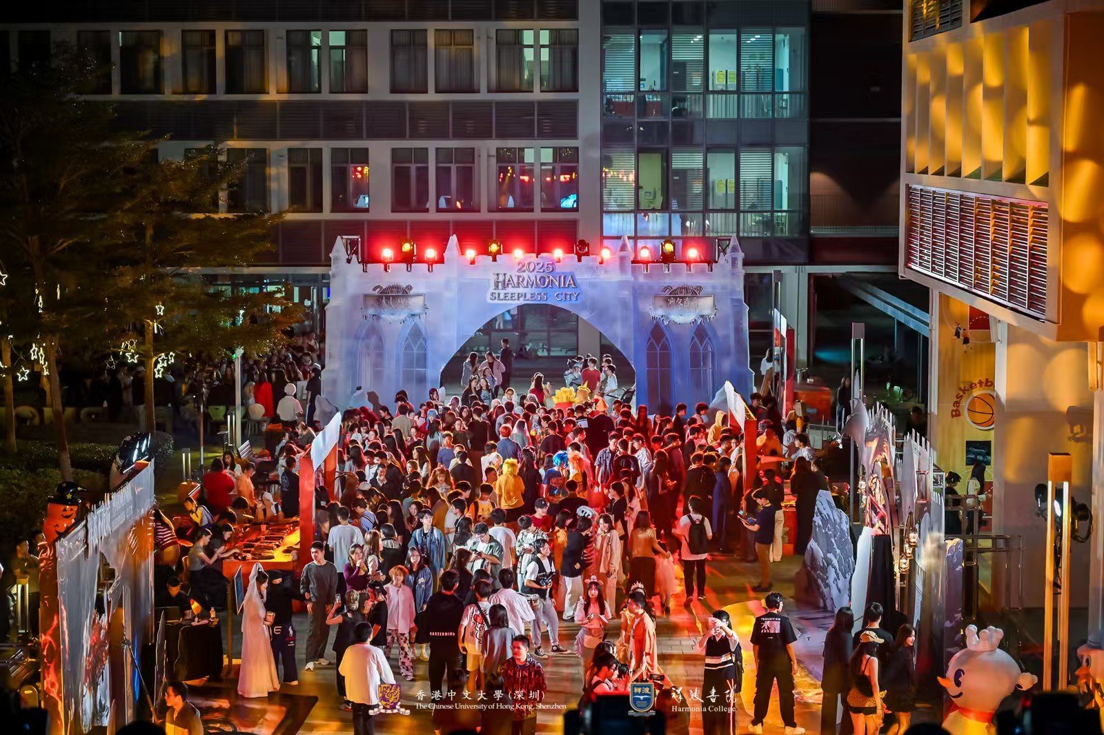 黯夜蛋糕坊、手工扭扭屋、不夜顏究所等攤位吸引眾多師生參與,甜品制作、南瓜燈手作、彩繪面具等活動讓現場笑聲不斷。港中大(深圳)電音社、祥波書院Hurricane舞蹈隊及Hip-Hop音樂社輪番登臺,以鼓點、舞姿與說唱點燃全場。