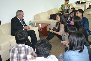 阿里耶·瓦謝爾教授在演講前,與到訪的中大(深圳)學(xué)生近距離座談,分享自己的科研心得。?