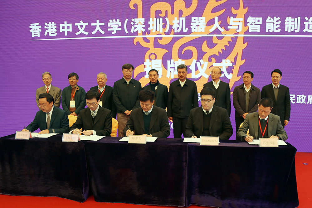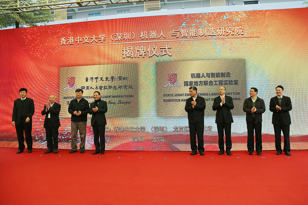 香港中文大學(深圳)機器人與智能制造研究院揭牌儀式于1月20日上午9時在深圳市龍崗區大運軟件小鎮舉行。徐揚生、高文、范滇元、熊有倫、張明高、王子才、唐叔賢、葉聲華、譚建榮、陳志杰、費愛國、桂衛華、陳純、樊邦奎等十四位中國工程院、中國科學院院士,深圳市市委書記馬興瑞、深圳市市長許勤、副市長張虎、市委秘書長郭永航、市政府秘書長李廷忠,市科創委、市經信委、市發改委、市教育局、龍崗區領導以及產業界的100名嘉賓出席了本次活動。