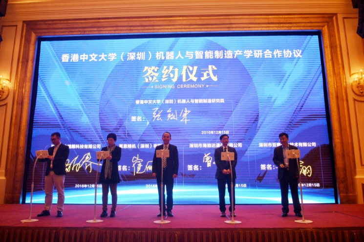 成立大會還舉行了會員單位的授牌儀式和會員合作單位簽約儀式,香港中文(深圳)分別與大宇精雕、萊恩精機、海能達、亞泰光電等會員企業簽署了合作協議。