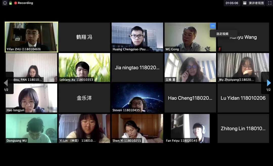 ? ? ? ? 來自廣東廣州的孔穎妮是理工學院的大二學生,她的第一節線上課程從任若冰教授主講的生物基礎課程(General Biology)開始。“任教授從介紹冠狀病毒的感染過程開始,帶我們回到了基礎生物知識學習的征途中。有了上周測試課程的準備,今天的課程開展得很順利,偶有網速導致卡頓,但影響不大?!?/p>
