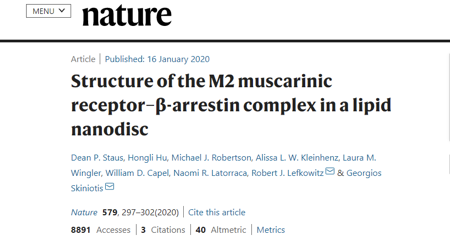 ? ? ? ? 胡紅麗教授發(fā)表的文章"Structure of the M2 muscarinic receptor–β-arrestin complex in a lipid nanodisc",是與斯坦福大學(xué)的Georgios Skiniotis教授以及杜克大學(xué)Robert J. Lefkowitz教授合作的研究成果。Lefkowitz教授因在GPCRs領(lǐng)域的突出貢獻(xiàn)獲得2012年諾貝爾化學(xué)獎(jiǎng)。