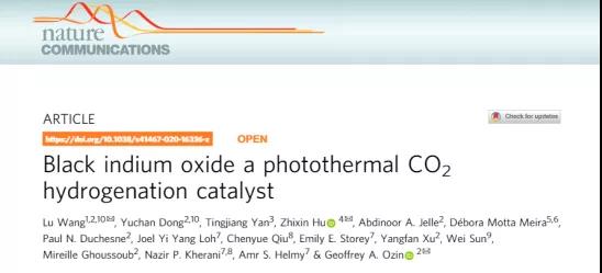 香港中文大學(深圳)理工學院王璐教授,天津大學胡智鑫教授和多倫多大學Geoffrey Ozin教授三方合作的題為“Black indium oxide a photothermal CO2 hydrogenation catalyst”文章發表在Nature Communications?(自然通訊)上。該文章的第一作者和共同第一作者分別為王璐教授和董玉嬋博士,通訊作者為王璐教授,胡智鑫教授和Geoffrey Ozin教授。