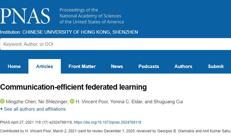 香港中文大學(xué)(深圳)崔曙光教授的研究團(tuán)隊(duì)近日在國際頂級期刊《美國國家科學(xué)院院刊》(Proceedings of the National Academy of Sciences)發(fā)表研究論文,提出了高效通信的聯(lián)邦學(xué)習(xí)算法從而實(shí)現(xiàn)聯(lián)邦學(xué)習(xí)在無線蜂窩網(wǎng)絡(luò)中的部署。本項(xiàng)研究的合作者包括:本·古里安大學(xué)Nir Shlezinger、魏茨曼科學(xué)研究學(xué)院Yonina Eldar、普林斯頓大學(xué)H.Vincent Poor。崔曙光教授和H. Vincent Poor共為本文的通訊作者。