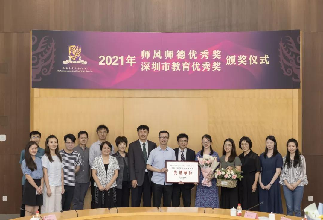 今年教師節前,我校向深圳市教育局推選了教育工作先進單位和先進個人。我校的中國語言文學教研室獲得2021年深圳市教育工作“先進單位”稱號,生命與健康科學學院的葉德全教授與人文社科學院的姜麗麗博士獲得“深圳市優秀教師”稱號,協理副校長辦公室(學生事務)的陳允女士獲得“深圳市優秀班主任”稱號。協理副校長顧陽教授為獲獎的先進單位與個人頒發榮譽獎牌與證書。