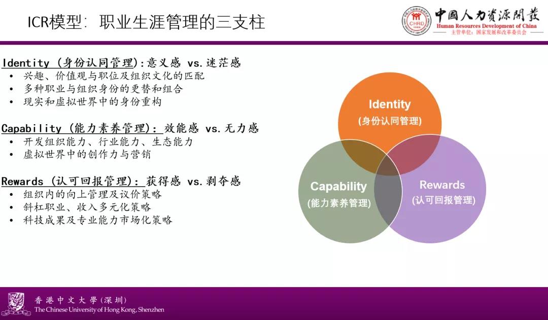 在這樣的背景下,如何管理新生代員工成為了許多企業(yè)的關(guān)注的一個(gè)問(wèn)題。報(bào)告中提到,管理者首先要理解新生代員工職業(yè)生涯管理的內(nèi)涵。基于ICR模型(Identity—Capability—Reward Model),新生代員工對(duì)職業(yè)生涯的管理是從身份認(rèn)同、能力素養(yǎng)以及認(rèn)可回報(bào)三個(gè)方面進(jìn)行。對(duì)此,管理者可以對(duì)管理風(fēng)格、企業(yè)文化、組織能力、激勵(lì)方式等方面進(jìn)行改進(jìn),從而更好地理解、預(yù)測(cè)和管理新生代員工的關(guān)注和職業(yè)發(fā)展。