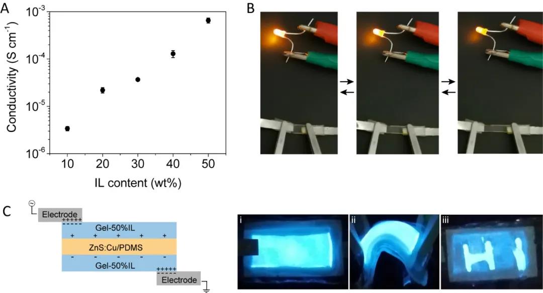 圖3. 離子凝膠應(yīng)用于電致發(fā)光器件