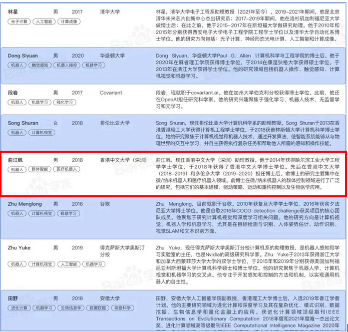 俞江帆教授是香港中文大學(深圳)助理教授、香港中文大學(深圳)校長青年學者、深圳市人工智能與機器人研究院(AIRS)院級項目負責人。他入選了2021年國家海外高層次青年人才項目(海外),并擔任中國微納技術學會微納米機器人分會理事。俞教授在2018年獲得香港中文大學博士學位,先后在香港中文大學(2018-2019)和多倫多大學(2019-2020)作為博士后進行研究工作。