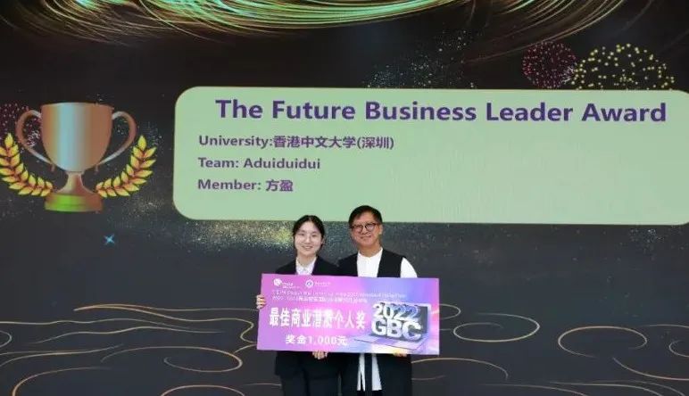 由香港中文大學(深圳)經(jīng)管學院本科生方盈、高逸、曾芷琳和尹姿諾組成的Aduiduidui學生代表隊繼奪得華南賽區(qū)冠軍再創(chuàng)佳績,喜提2022 CGMA商業(yè)精英國際挑戰(zhàn)賽全國賽冠軍和北亞極限賽季軍。方盈同學榮獲全國總決賽“最佳商業(yè)潛質(zhì)個人獎”。