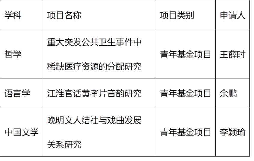 近期,2022年度教育部人文社會科學研究一般項目評審結果公布。香港中文大學(深圳)人文社科學院獲得三項青年基金項目立項,分別是王薛時老師申報的哲學青年基金項目“重大突發公共衛生事件中稀缺醫療資源的分配研究”、余鵬老師申報的語言學青年基金項目 “江淮官話黃孝片音韻研究”以及李穎瑜老師申報的中國文學青年基金項目“晚明文人結社與戲曲發展關系研究”。