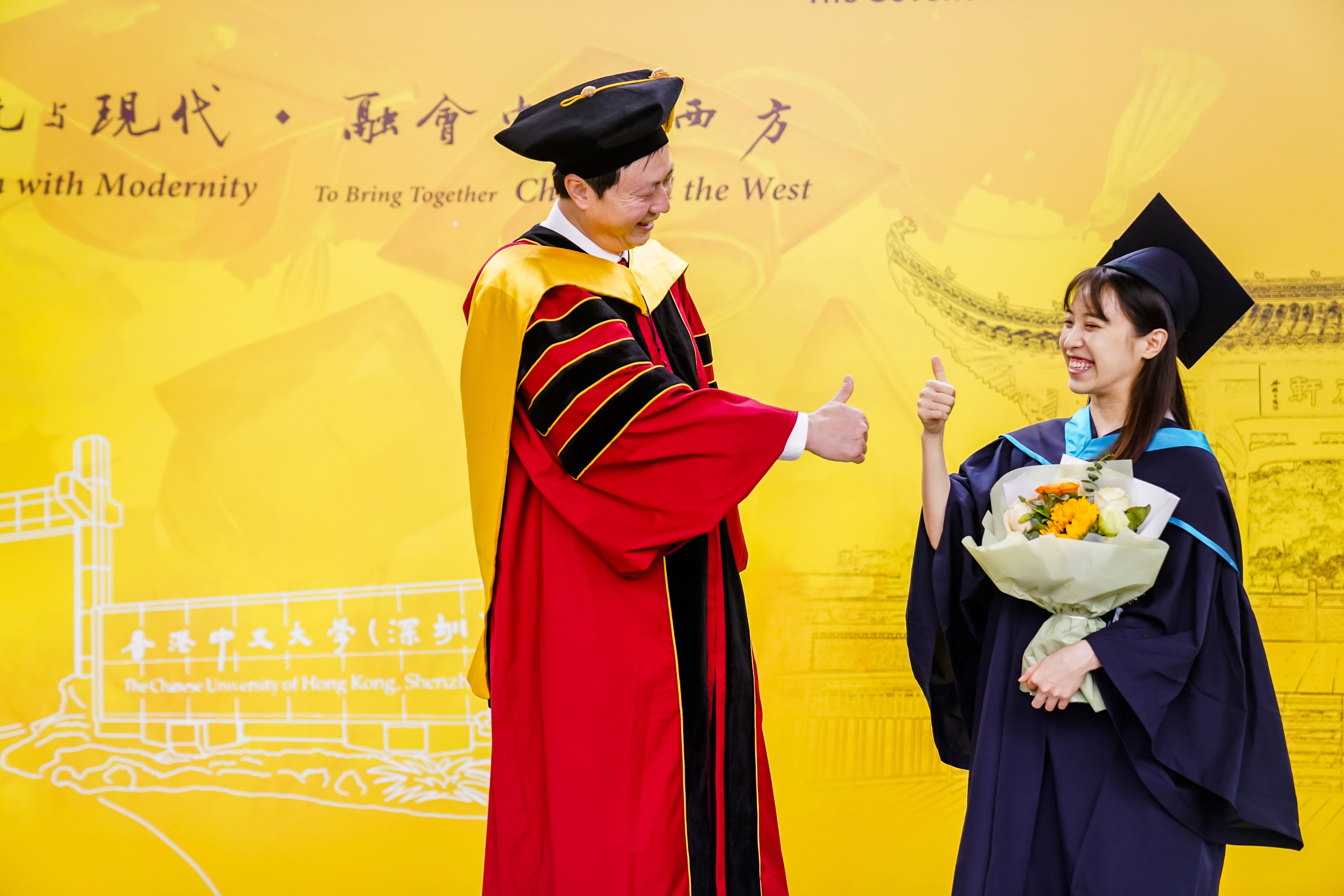 據悉,本屆研究生畢業生是從港中大(深圳)畢業的第七屆研究生,共923人,他們分別來自管理學、會計學、市場學、經濟學、金融學、計算機與信息工程、材料科學與工程、同聲傳譯、翻譯(筆譯/口譯)、應用心理學、全球研究、數據科學、金融工程、生物科學、供應鏈與物流管理高級管理人員專業。多數畢業生選擇在粵港澳大灣區工作,為大灣區建設貢獻力量。