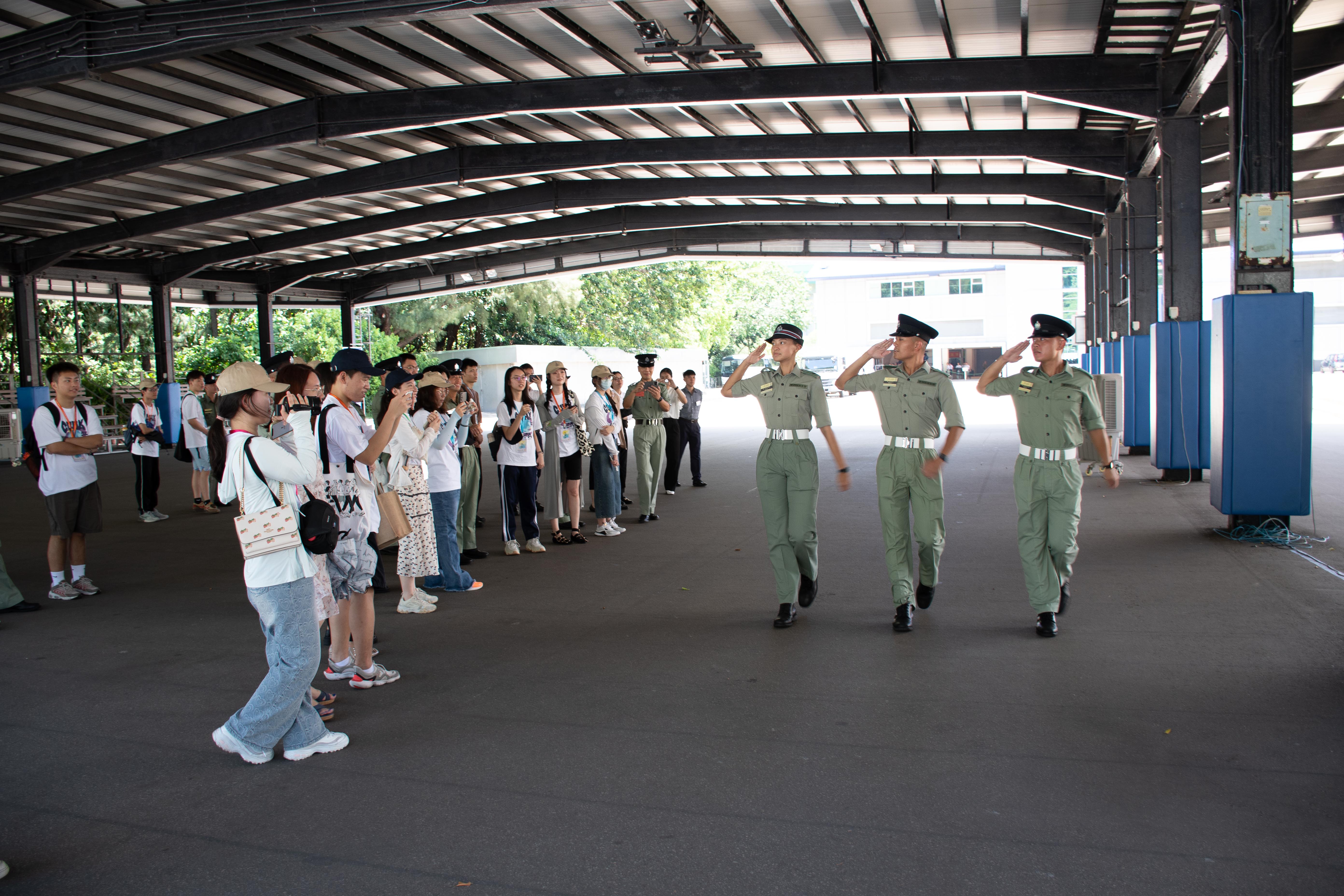 當日的終點站為中國人民解放軍駐香港部隊展覽中心。以“夢起東方”為主題,設有中國夢、強軍夢和香江衛士3個主題展廳以及裝備模型展示區,展覽中心邀參訪師生們縱閱中華古今,飽覽神州山河,并呈現了駐港部隊貫徹“一國兩制”方針、維護香港長期繁榮穩定的生動實踐。“駐港部隊的工作內容做到了因地制宜,而且深入群眾”,觀覽“香江衛士”板塊時一位同學如是感嘆。駐港部隊不僅履行神圣使命維護國家主權、安全和領土完整,維護香港長期繁榮穩定,并融入本地,組織社區公益、開展青少年軍事夏令營。駐港部隊深入民眾生活,實現軍民相親相融。夯實能力,實現強軍,一心向民,區旗的紅色背景里流淌著中國軍人愛港護港的青春熱血!