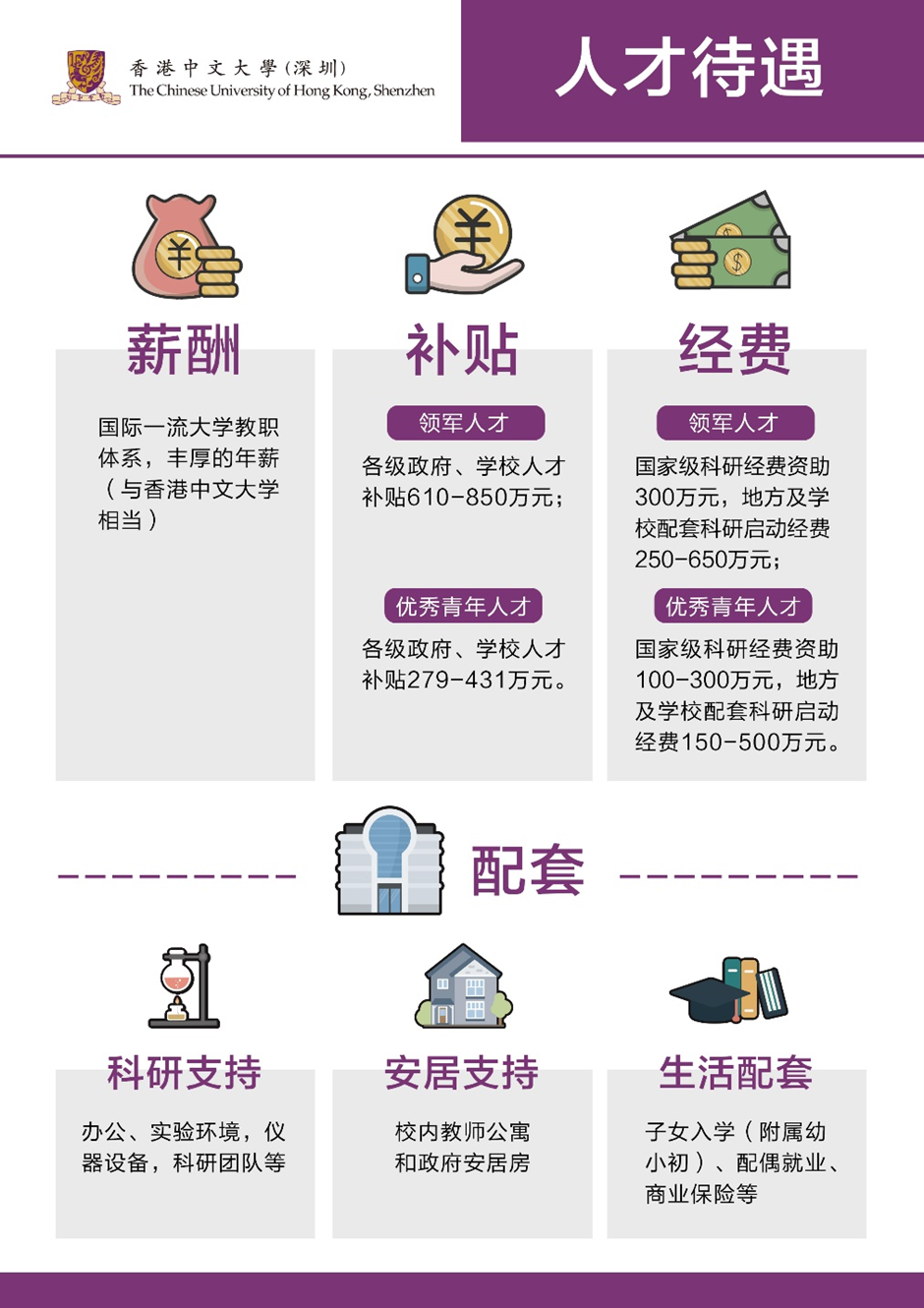 國際一流大學教職體系,豐厚的年薪(與香港中文大學相當);享受粵港澳大灣區(qū)個人所得稅優(yōu)惠政策;