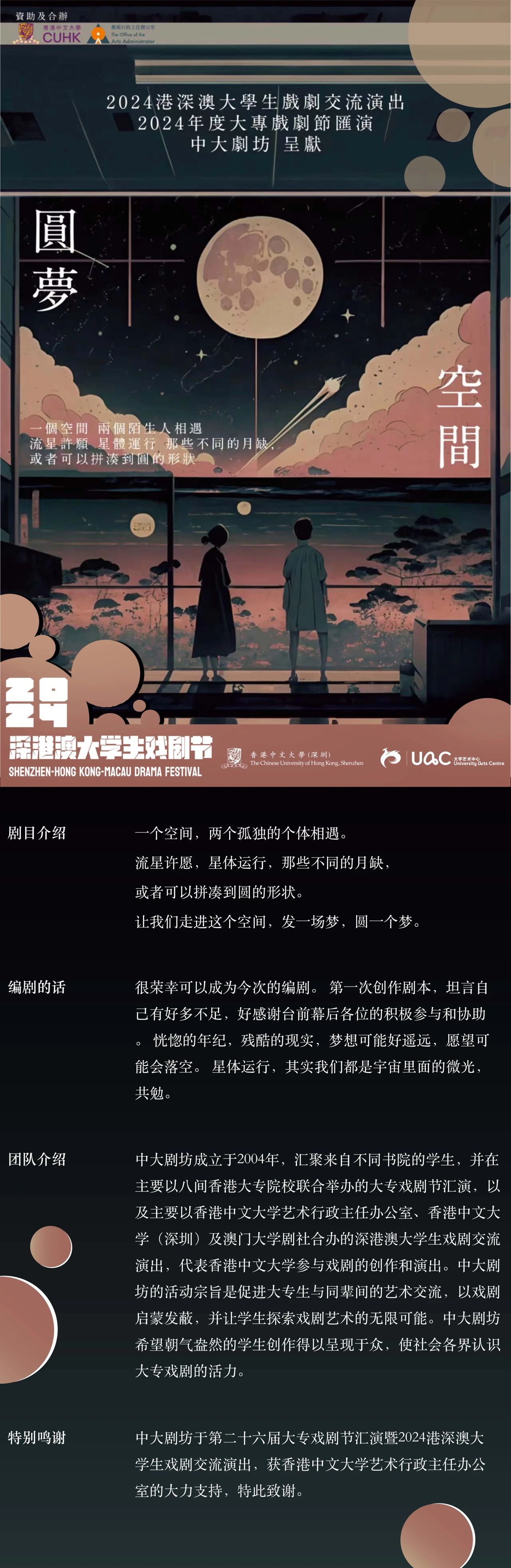 3月27日是“世界戲劇日”(World Theatre Day),由國際戲劇協會(International Theatre Institute, ITI)創立,旨在喚起全世界對戲劇藝術的關注和重視。就在今天,2024深港澳大學生戲劇節展演開放報名!