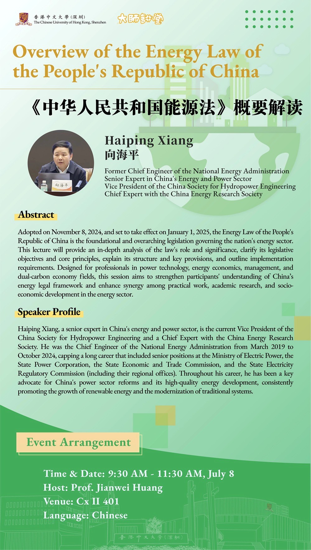 《中華人民共和國能源法》于2024年11月8日通過,自2025年1月1日起施行。能源法是我國能源領域基礎性、統領性法律。本次講座將深入解讀能源法的定位和重要意義,闡述立法目的和基本原則,講解框架結構和主要法條內容,介紹貫徹實施的有關要求,為電力能源技術、經濟、管理和雙碳經濟領域的干部職工夯實能源法律制度背景知識,推動電力能源領域實際工作、學術研究與經濟社會發展深度融合。