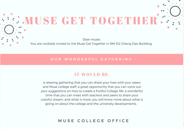 備注:具體活動時間地點由每周郵件通知。書院將準備美味可口、豐富多樣的午餐供大家享用。為了避免失誤浪費,請收到邀請的同學立即回復參加午膳的郵件,感謝大家的配合與參與。
