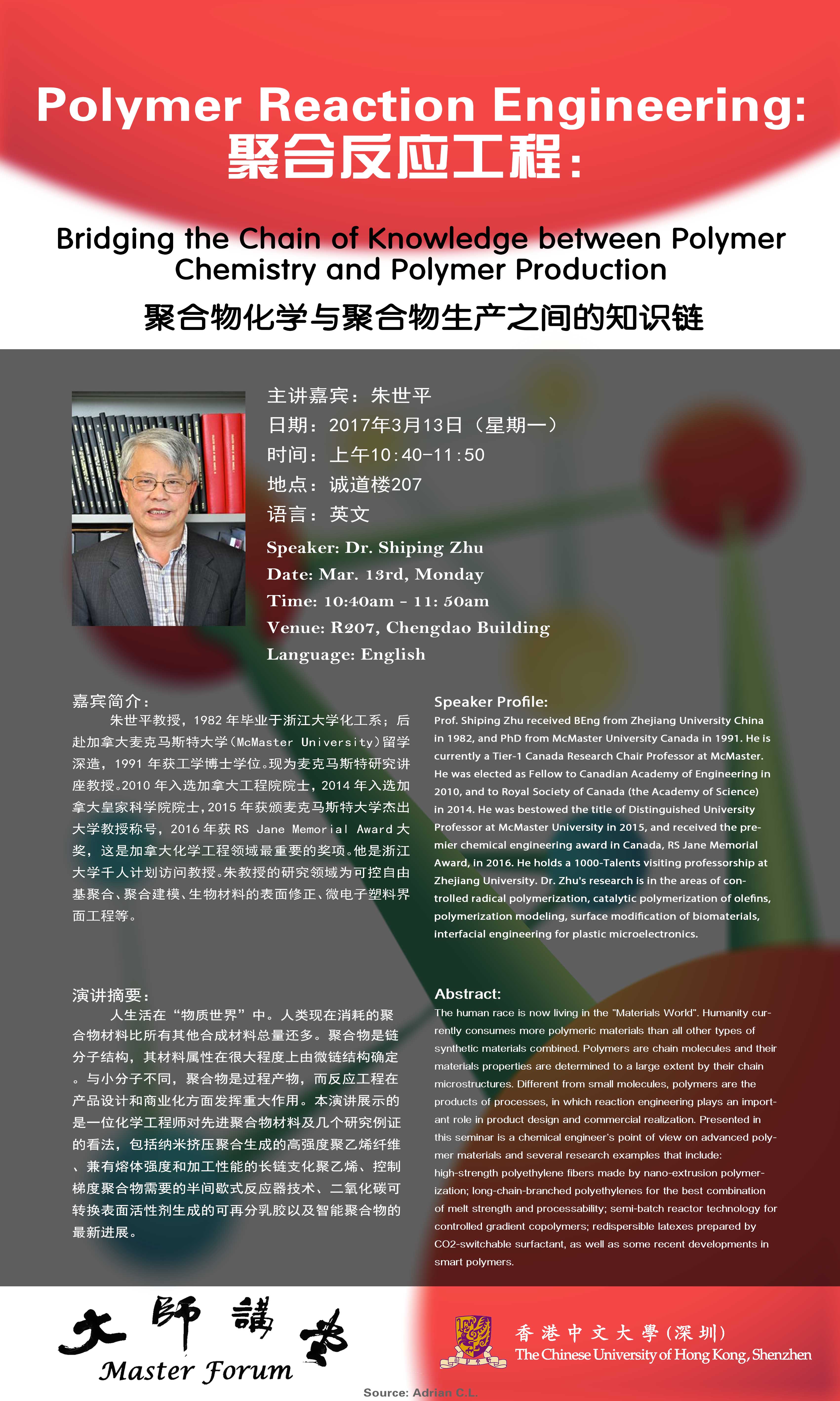 主題:聚合反應工程:聚合物化學與聚合物生產之間的知識鏈