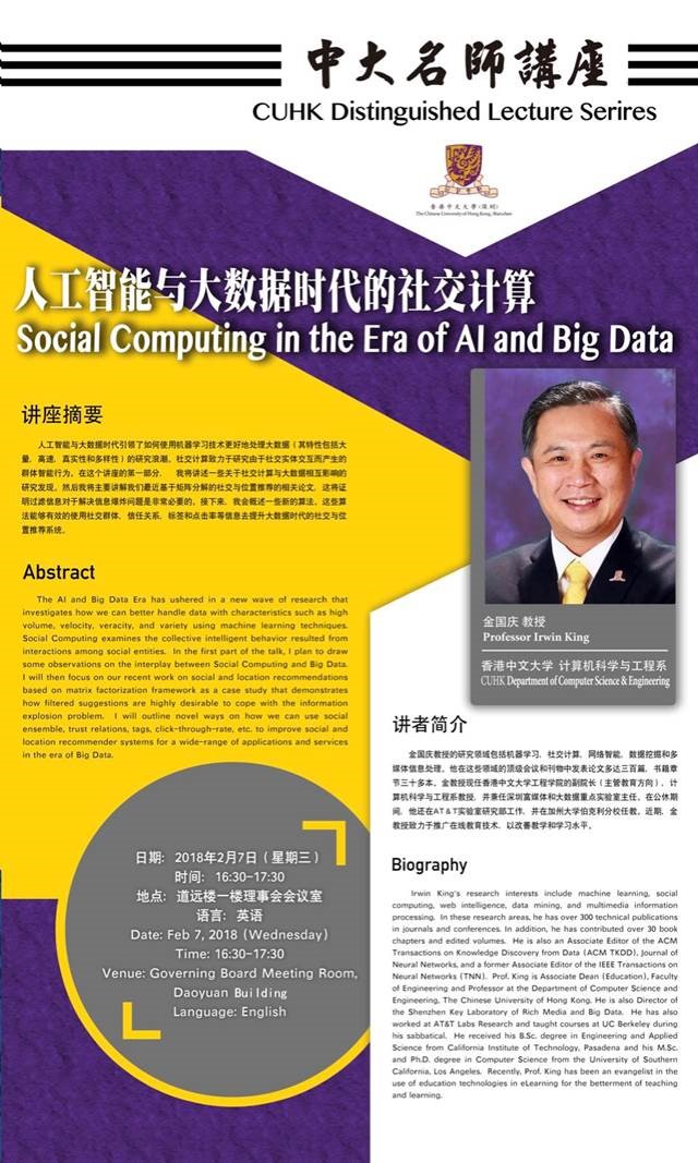 主題:人工智能與大數據時代的社交計算