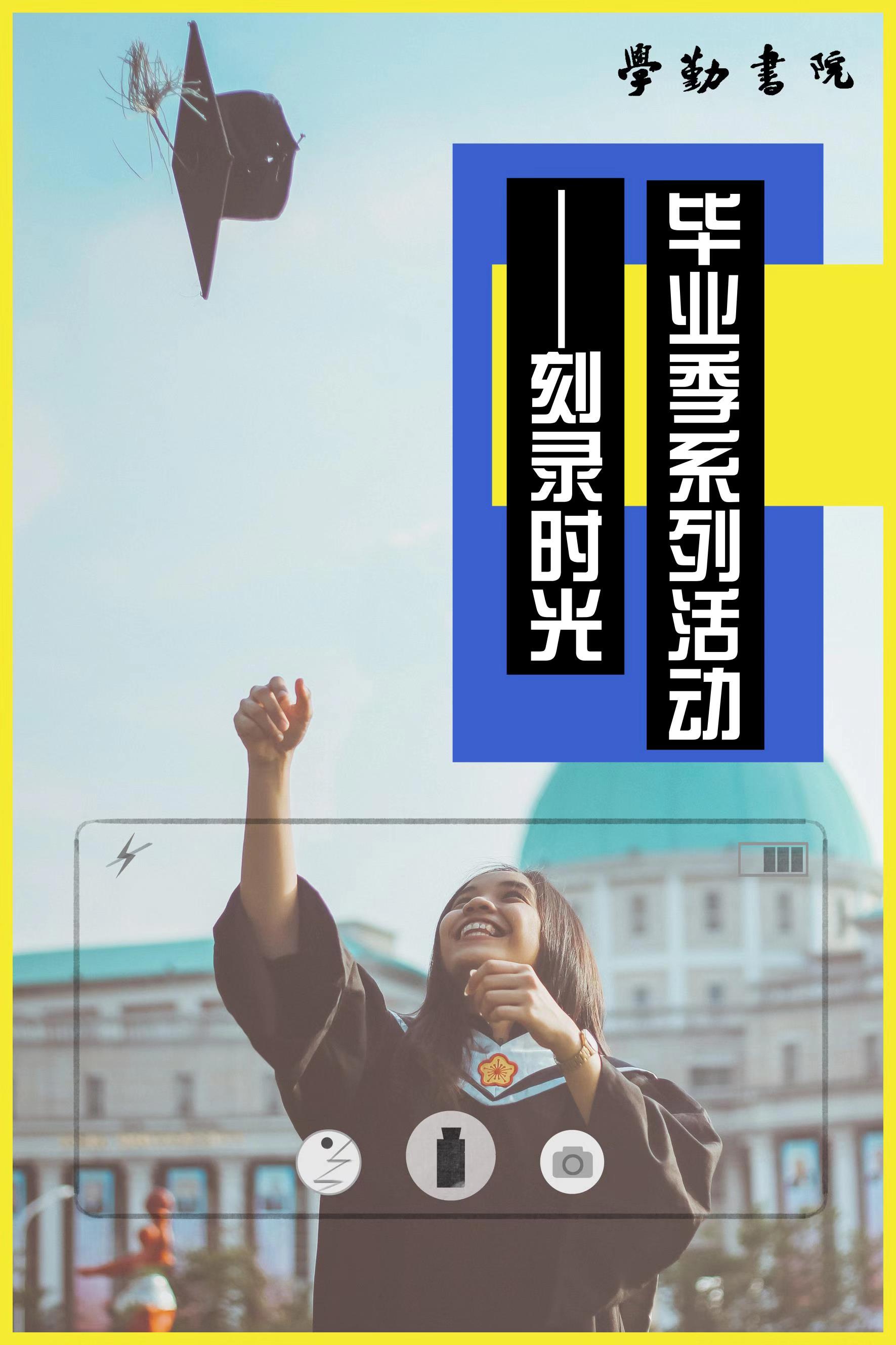 活動預告 | 畢業季系列活動:刻錄時光Ⅱ 2019-03-12 活動預告 2019畢業季系列活動一:刻錄時光暨畢業紀念冊拍攝 時間:3月16-17日,9:30-11:30,14:00-17:00;3月18-22日,16:00-17:00 地點:學勤書院B前臺(集合)