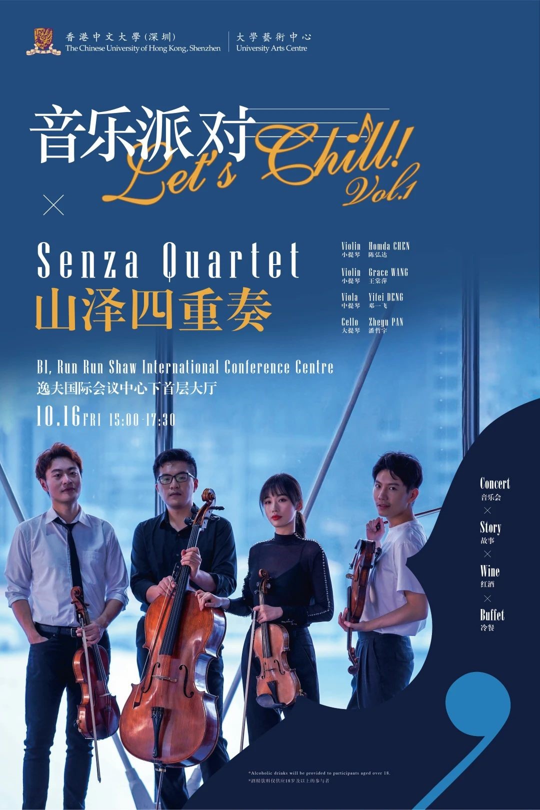 “Let's Chill! 音樂派對”為大學藝術中心推出的全新系列活動。活動將邀請音樂家、小型樂團或音樂專業人士作為嘉賓,并融合輕松的音樂欣賞、互動交流以及設計感的酒會文化。以此豐富校內藝術活動的體驗形式,拉近學生與音樂界專業人士的距離,并增加交流機會。