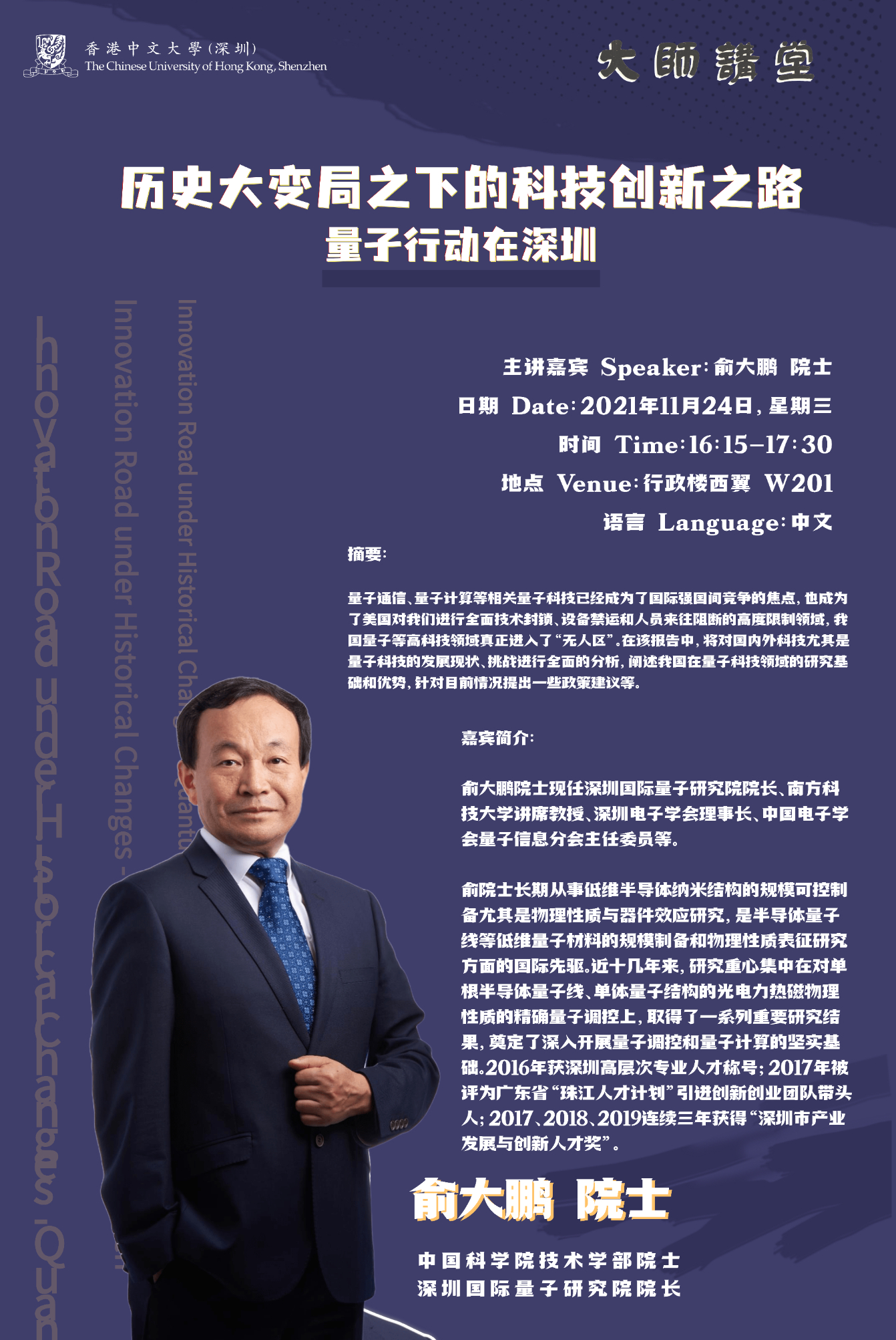 大師講堂 | 歷史大變局之下的科技創(chuàng)新之路——量子行動在深圳