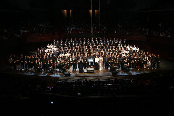 ? ? ? ?最后,香港中文大學(深圳)的學生合唱團、教職員合唱團和管弦樂隊壓軸,帶來曲目《仁慈的耶穌》、《隨它吧》、《一次就好》和《青青世界》。